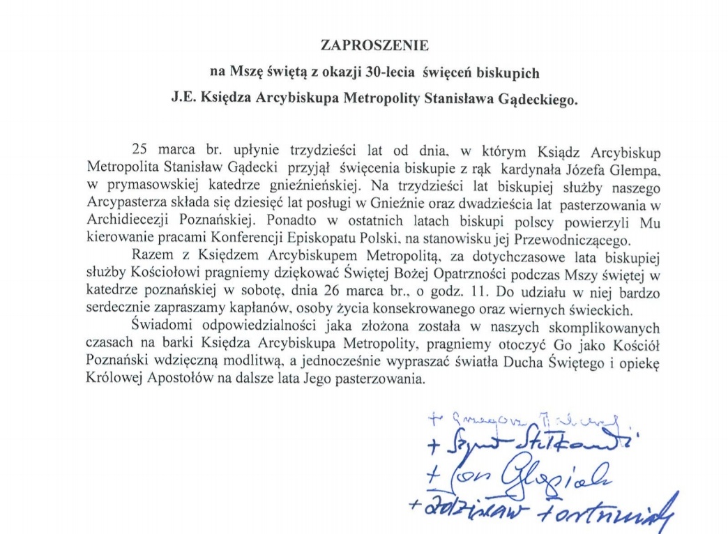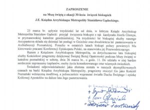 Zaproszenie na Mszę Świętą z okazji 30 lecia święceń biskupich Księdza Arcybiskupa 12 marca 2022 by Teodozja